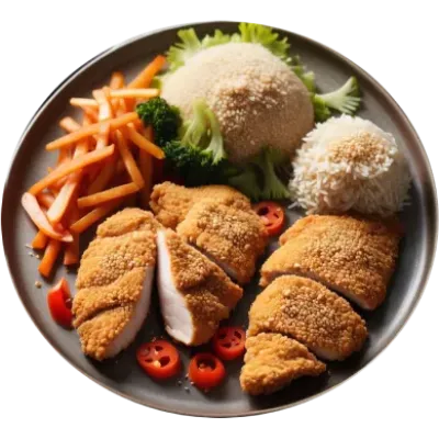 (szezámmagos bundában rántott csirkemellfilé szelet, választható körettel!)