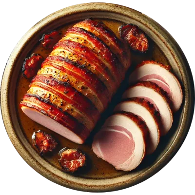(sertésborda szelet, bacon szalonna, olíva olaj, választható körettel!)