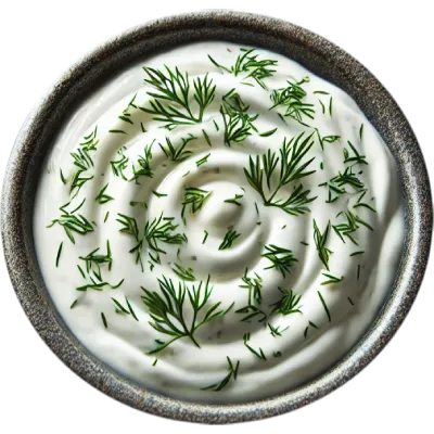 (friss kevert saláta, grillezett csirkemell szeletek, kapros-fokhagymás öntet)